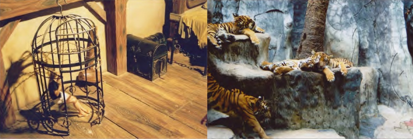 這兩張照片也是在泰國行時拍的。一張的場景是在遊樂園的巨人之屋,會拍下這張照片是因為看到這一幕,腦海裡便浮現「籠中的金絲雀」的畫面,於是想都沒想就按下快門;另一張則是在據說也是泰國旅行團必遊景點-龍虎園拍的,吸引我目光的是老虎們那生無可戀的模樣。「生無可戀的籠中鳥」少女的神情大概就是這麼一回事吧。我不清楚少女在其他遊客相機中留下的樣子,或許少女根本也沒發覺自己臉上的表情是如何,也或許少女也是很想展現出平常心,但是她的努力卻不能稱得上成功。